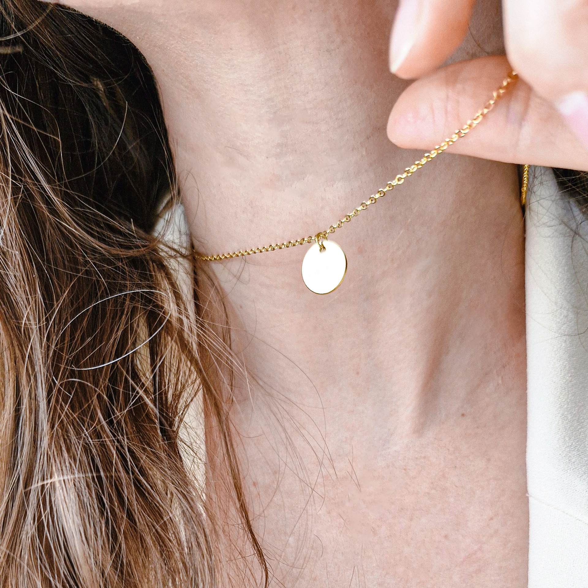 Jemný náhrdelník s okrúhlym príveskom v zlatom tóne je ideálny na každodenné nosenie aj vrstvenie s ďalšími šperkami. Vďaka čistému dizajnu sa ľahko kombinuje a stáva sa nenahraditeľnou súčasťou každého šatníka.