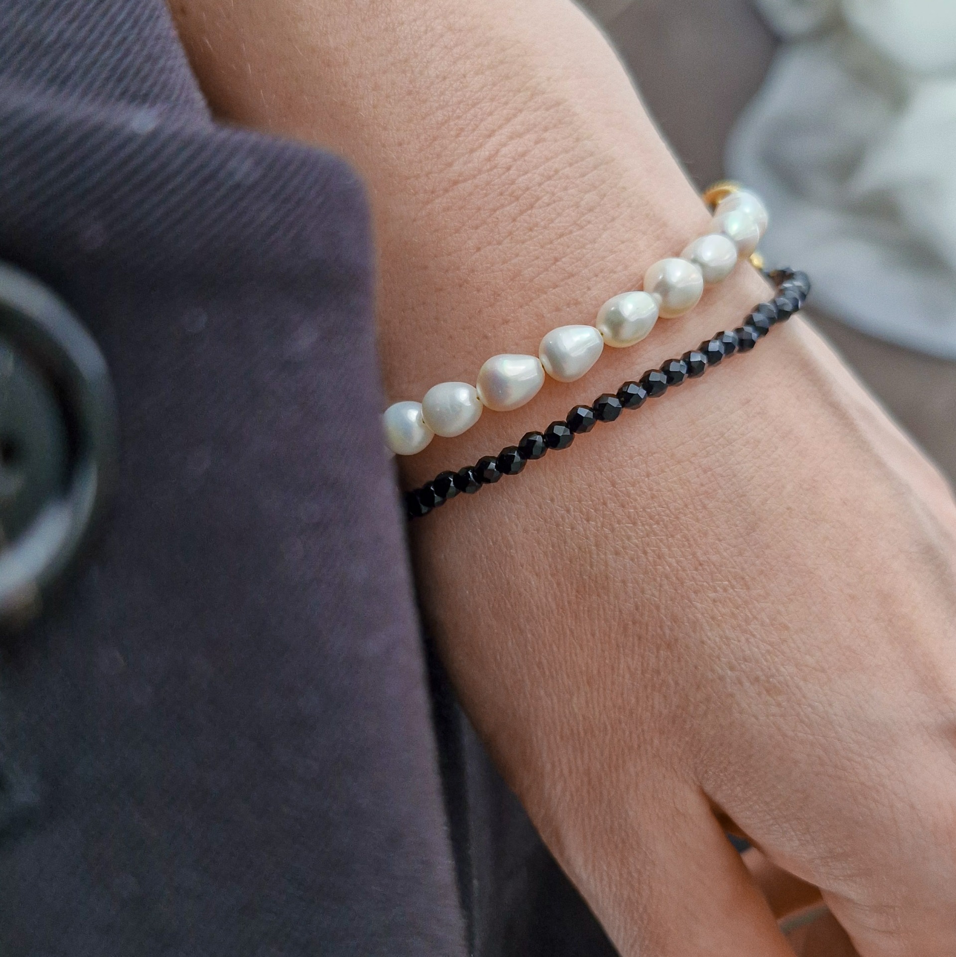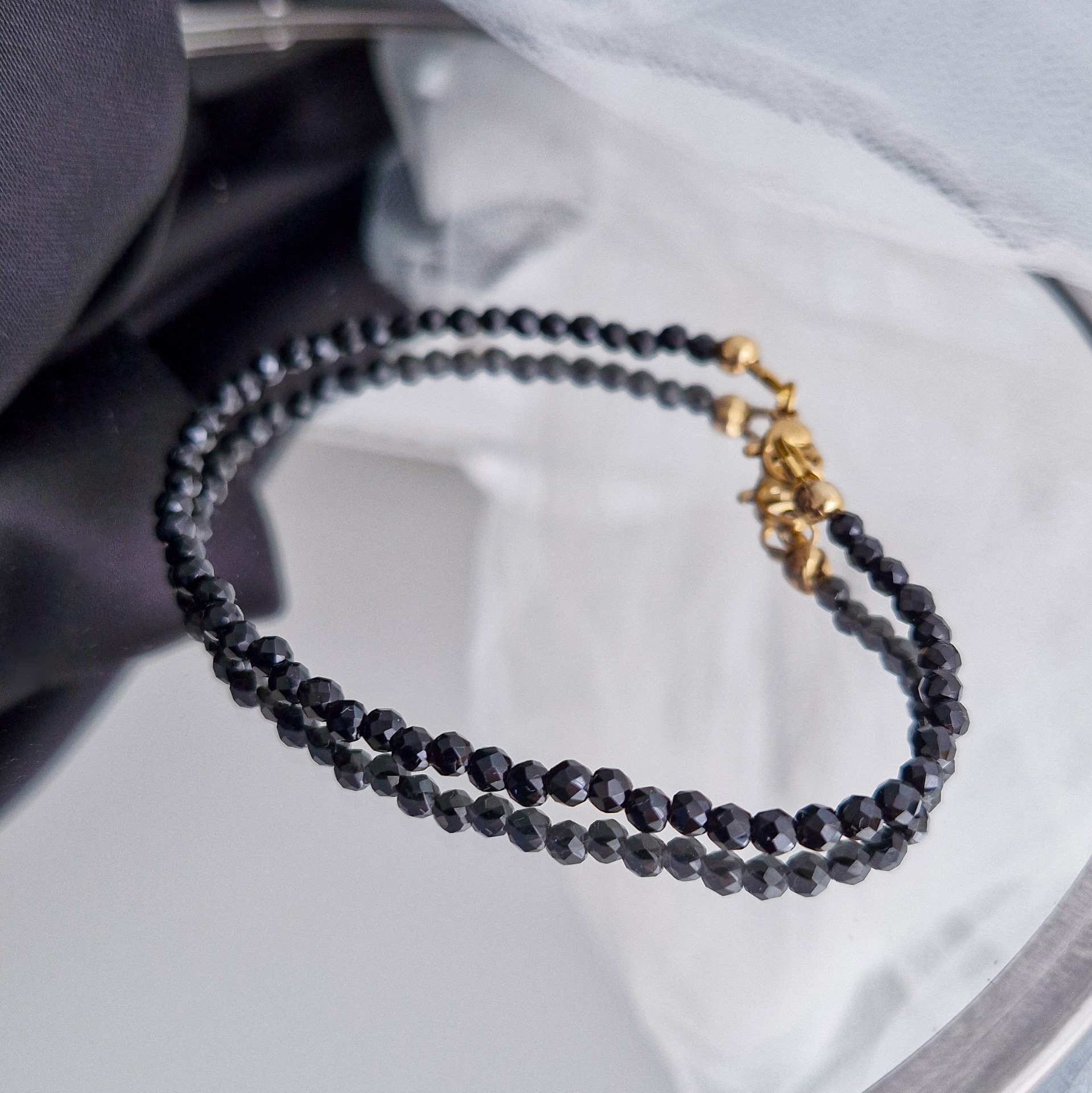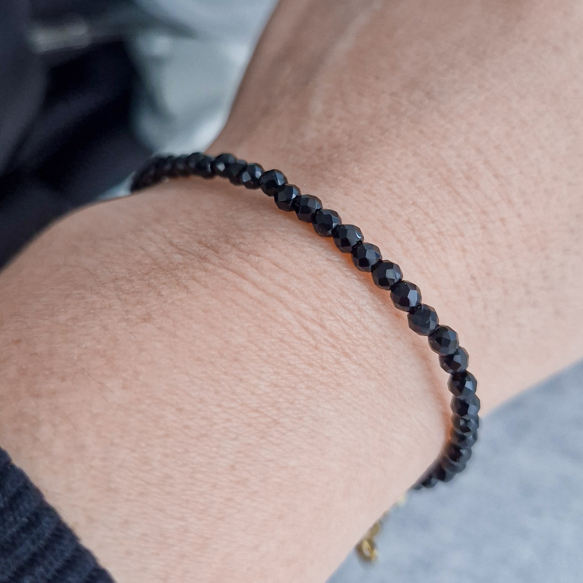 Jemný náramok z drobných tmavých korálok, ktorý dodá každému outfitu elegantný a moderný nádych. Jeho minimalistický dizajn pôsobí nenápadne, no práve v jednoduchosti spočíva jeho sila.