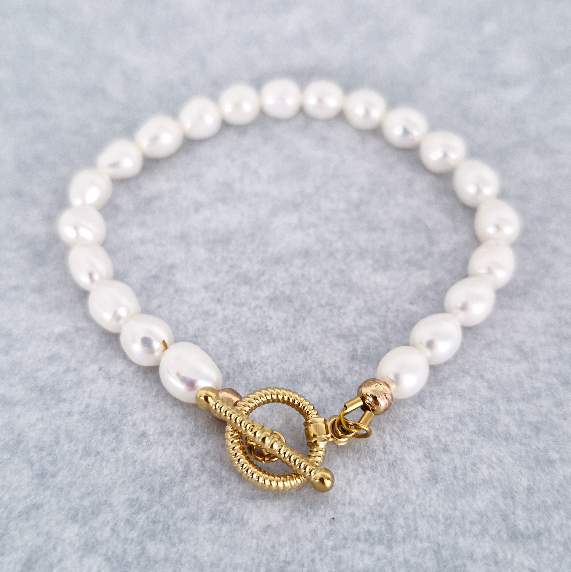 Elegantný náramok z pravých riečnych perál, ktorý stelesňuje jednoduchosť a nadčasový štýl. Jemné ozdobné zapínanie prirodzene dopĺňa dizajn a dodáva šperku sofistikovaný detail.