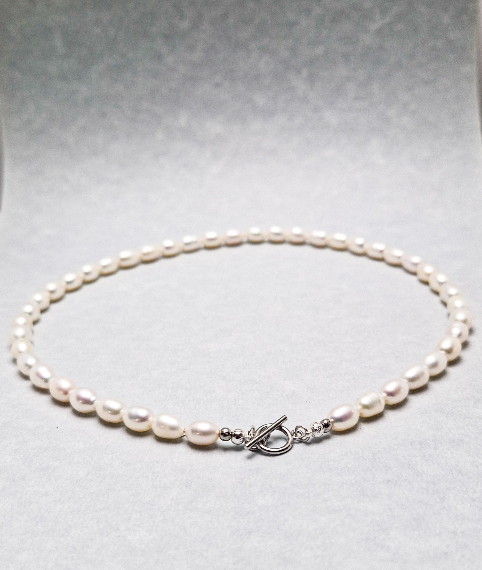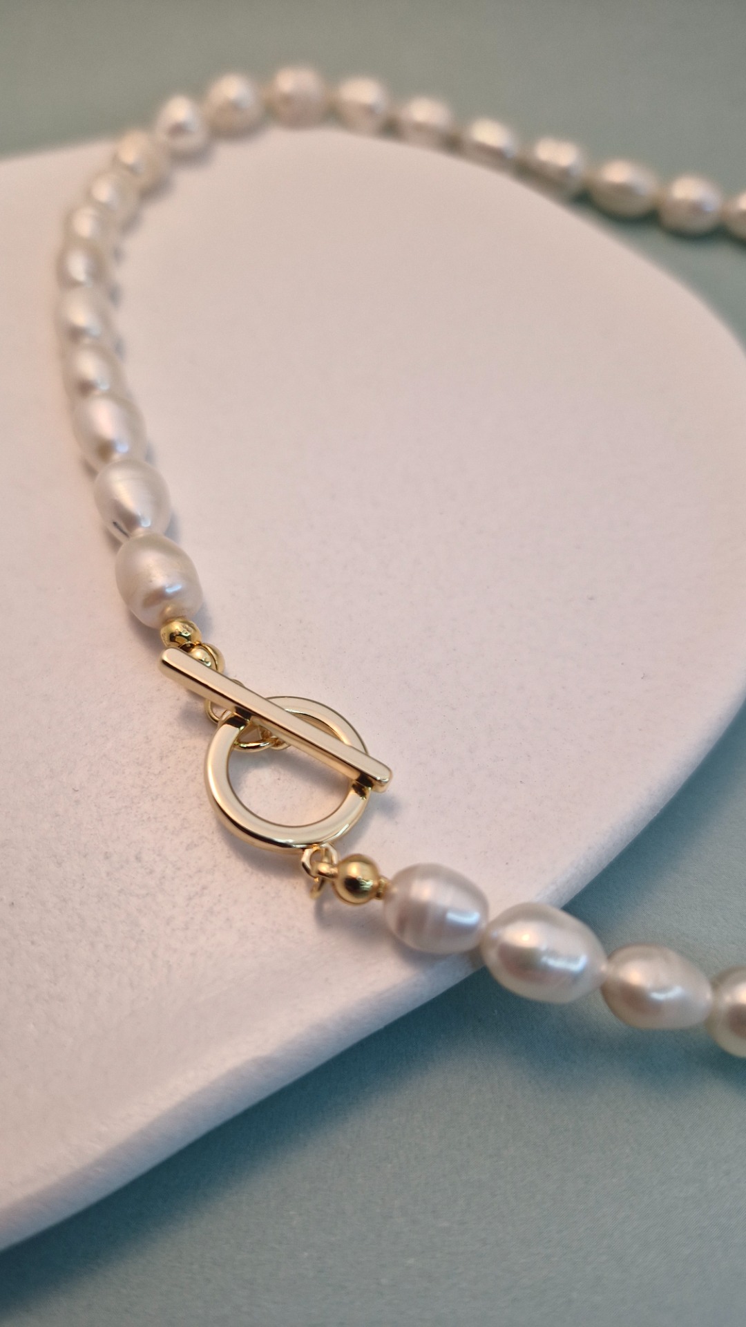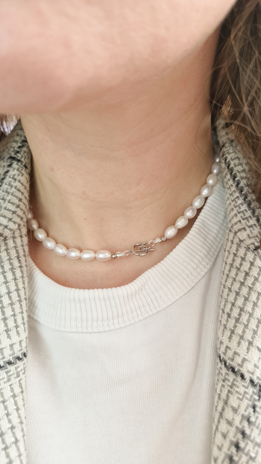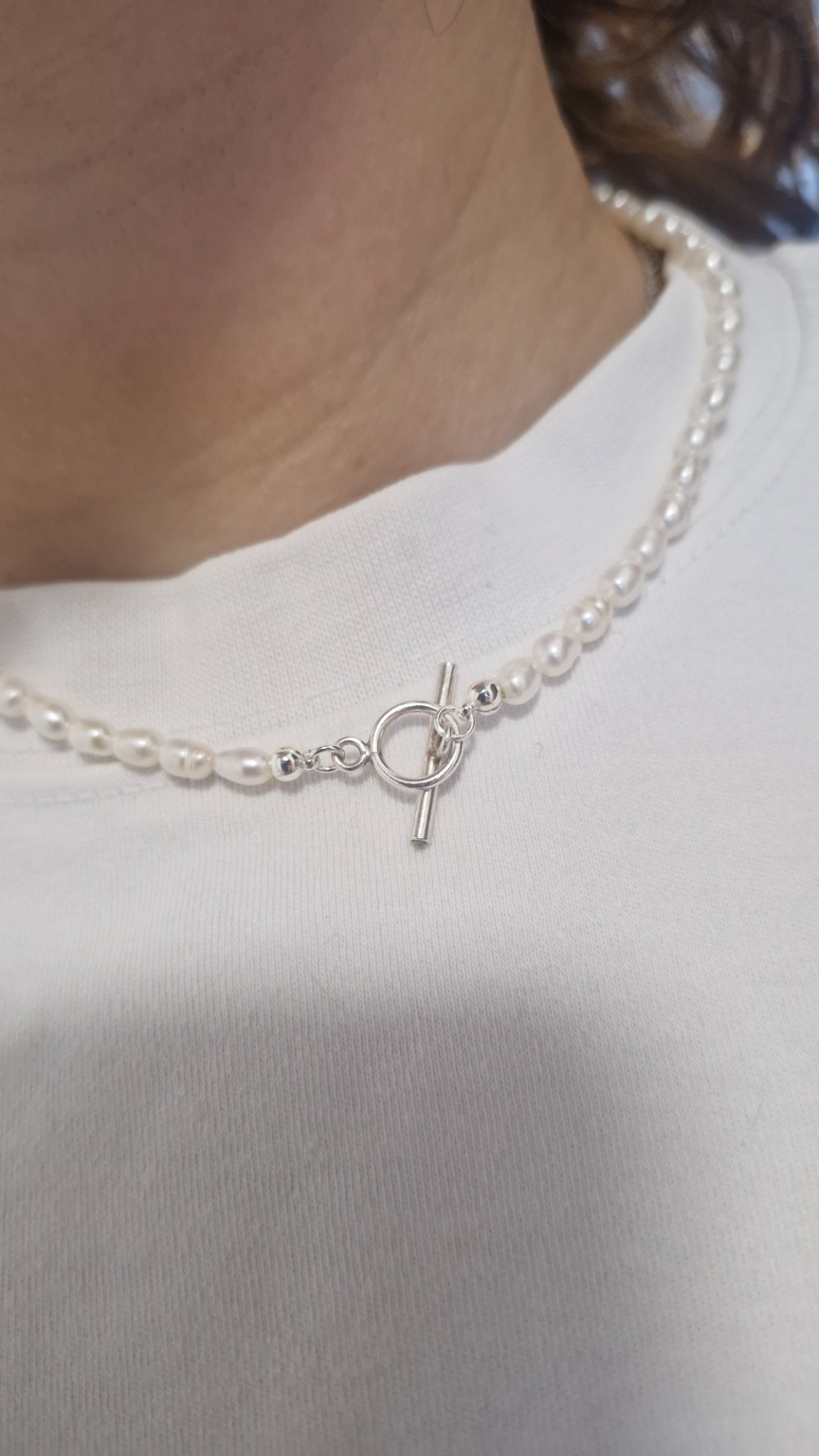 Minimalistický náhrdelník z pravej riečnej perly. Dĺžka náhrdelníka je 37cm.