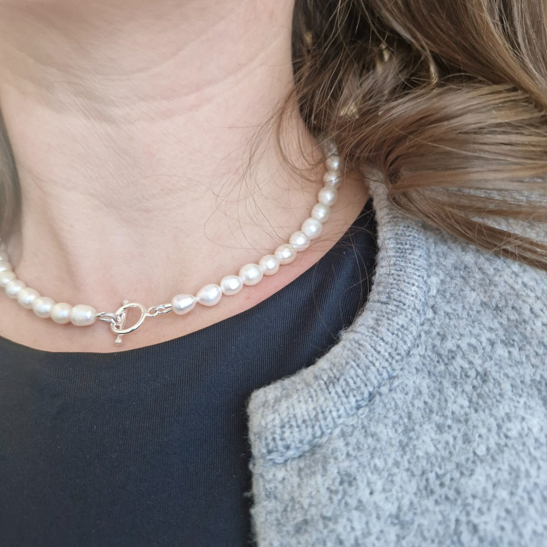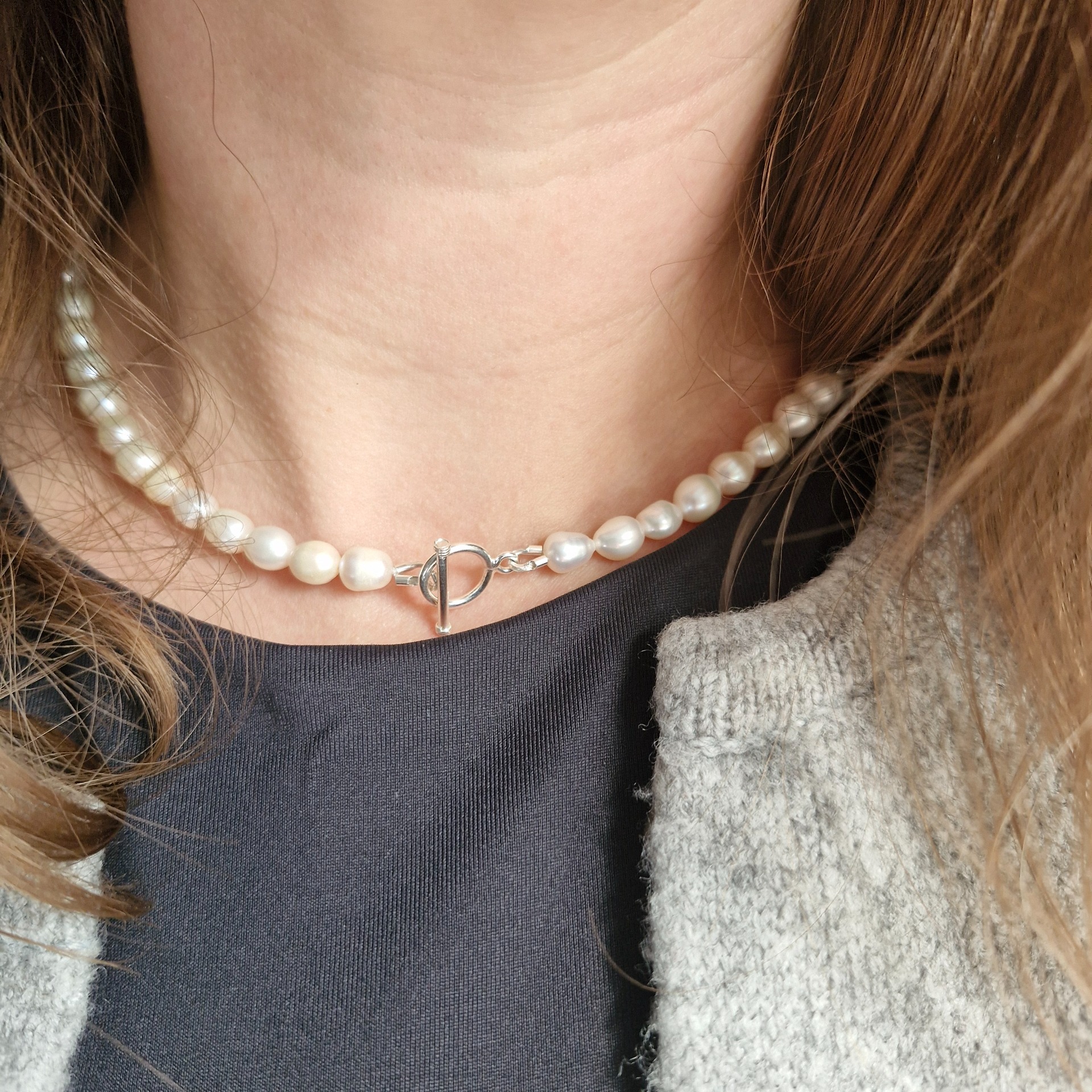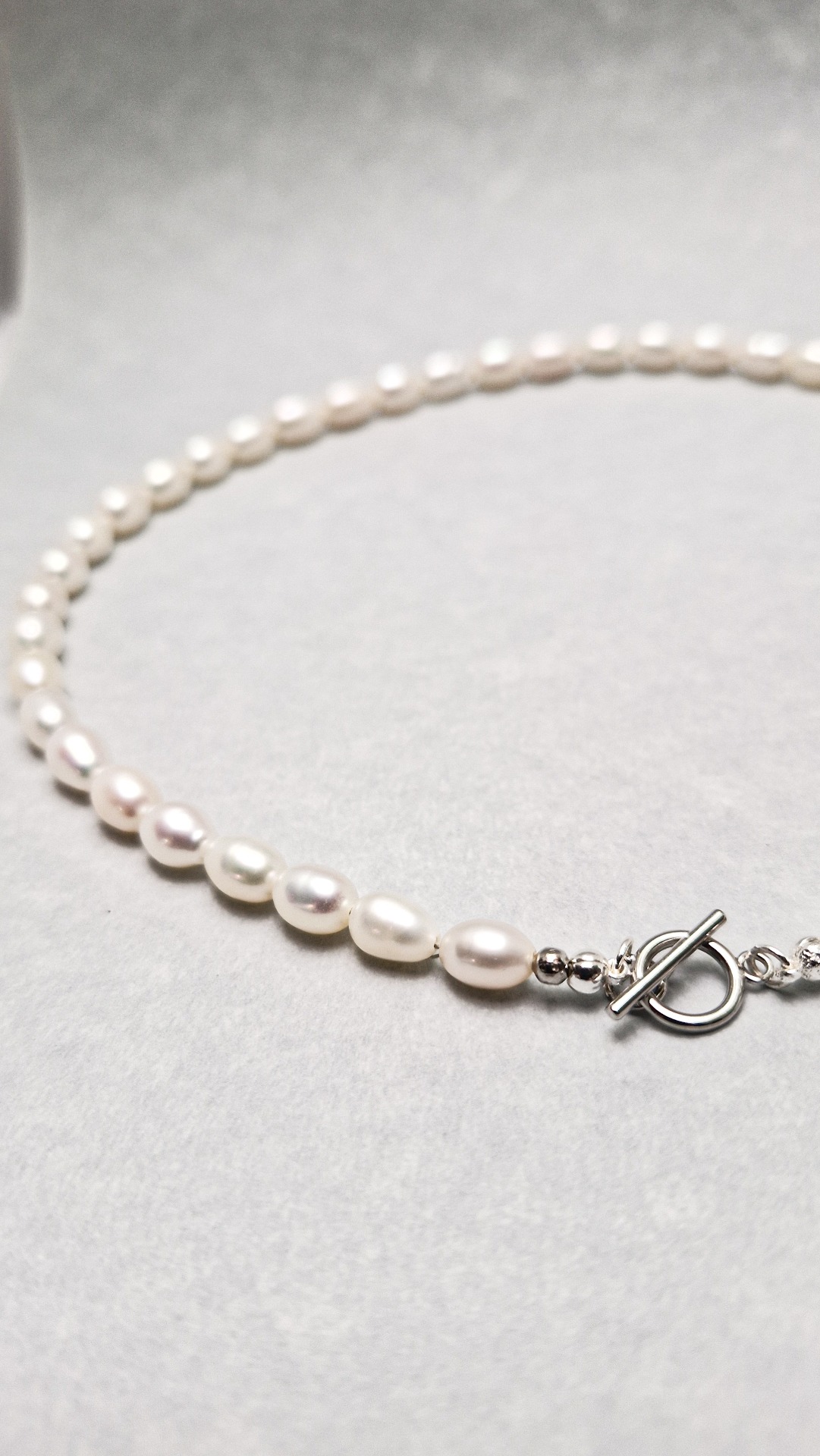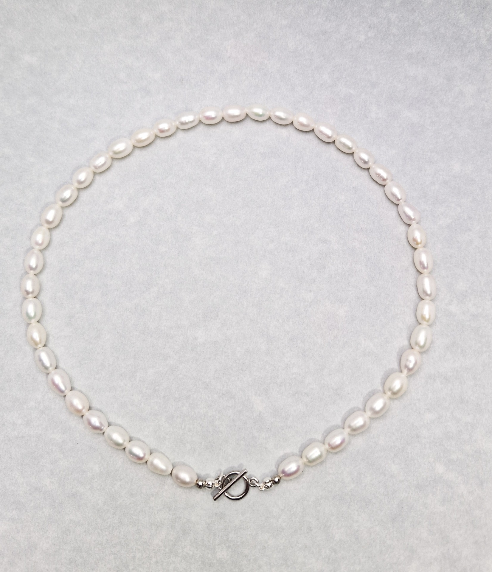 Minimalistický náhrdelník z pravej riečnej perly. Dĺžka náhrdelníka je 37cm.